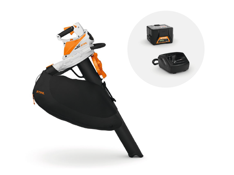 Si necesitas una batería del sistema STIHL AK y un cargador para el STIHL SHA 56, puedes pedirlos en conjunto. La aspiradora sopladora incluye una batería de iones de litio STIHL AK 20 y un cargador estándar AL 101.