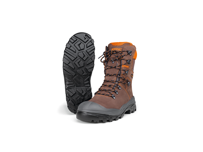 - Robusta bota para motosierra con protección anticorte y puntera de acero