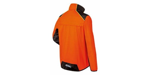 De material impermeable, elástico y resistente. Color naranja de seguridad, tejido exterior: 100 % poliéster, revestimiento: 100 % poliuretano. Grandes zonas naranjas de seguridad. Columna de agua: ≥ 5.000 mm. Transpirable gracias a las aberturas de ventilación en las mangas, así como en la parte delantera y trasera. La capucha se puede guardar en el cuello.