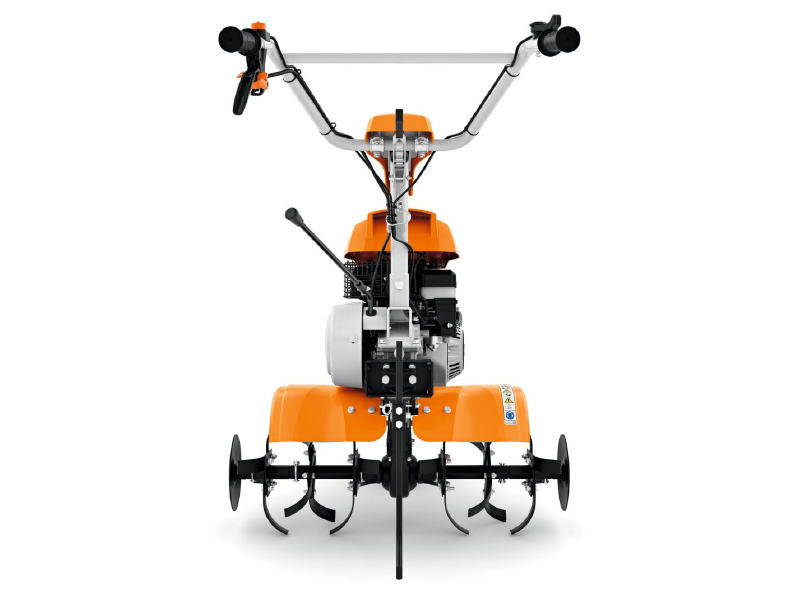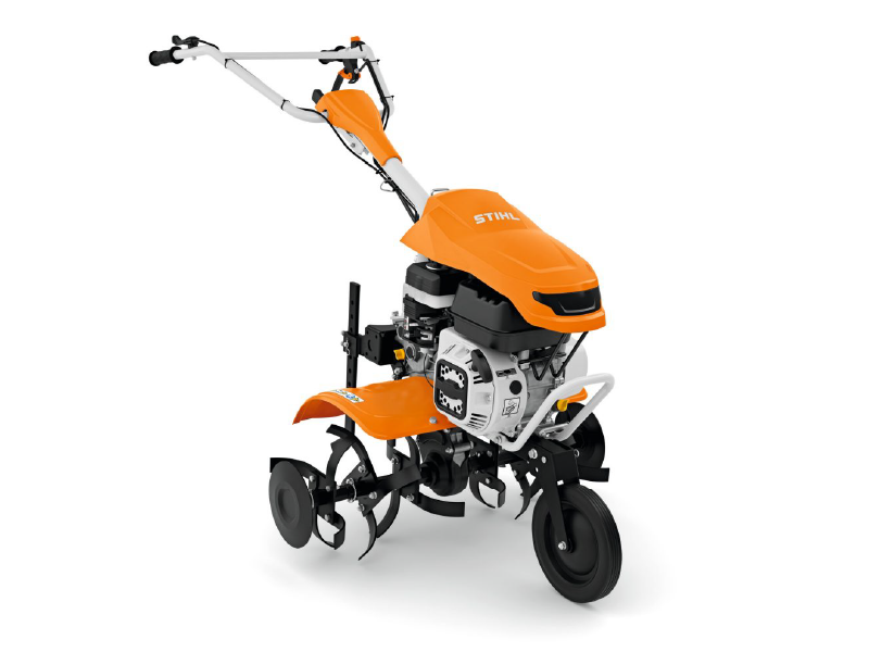 Con su gran potencia, la motoazada STIHL MH 600 está especialmente recomendada para arrancar suelos densos y sólidos y para excavar grandes superficies. Equipado por un potente motor de gasolina, surca la tierra en una trayectoria de 80 cm de ancho. La forma de las cuchillas de corte le permite mezclar la tierra de la manera más eficiente y potente, cortar las raíces viejas y el material vegetal y llevarlo a la superficie. Para un uso práctico y duro, todos los componentes sometidos a tensión están fabricados con materiales especialmente resistentes, como el acero inoxidable reforzado. El ajuste central del manillar garantiza un manejo ergonómico, para que puedas relajarte a pesar de las elevadas fuerzas que se ejercen. La máquina puede moverse con suavidad gracias a las dos marchas de avance y a la marcha atrás. Entre un uso y otro, la motoazada puede desplazarse con la ayuda de sus ruedas o colocarse en posición de limpieza. Esto hace que sea especialmente fácil limpiar o cambiar las cuchillas de la azada.