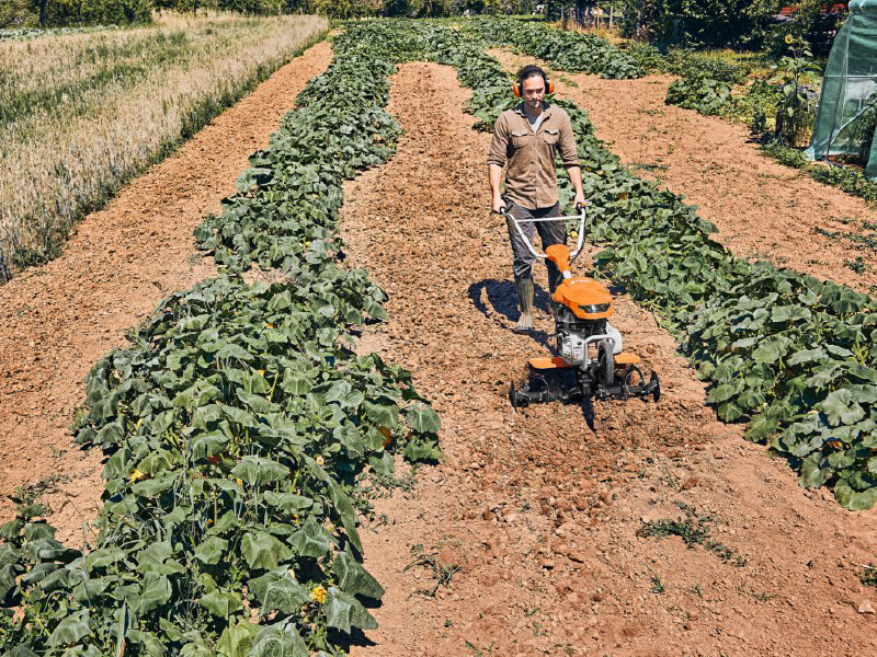 Las cuchillas de la motoazada STIHL MH 600 tienen una forma especial que permite excavar el suelo en una forma optimizada y eficiente.