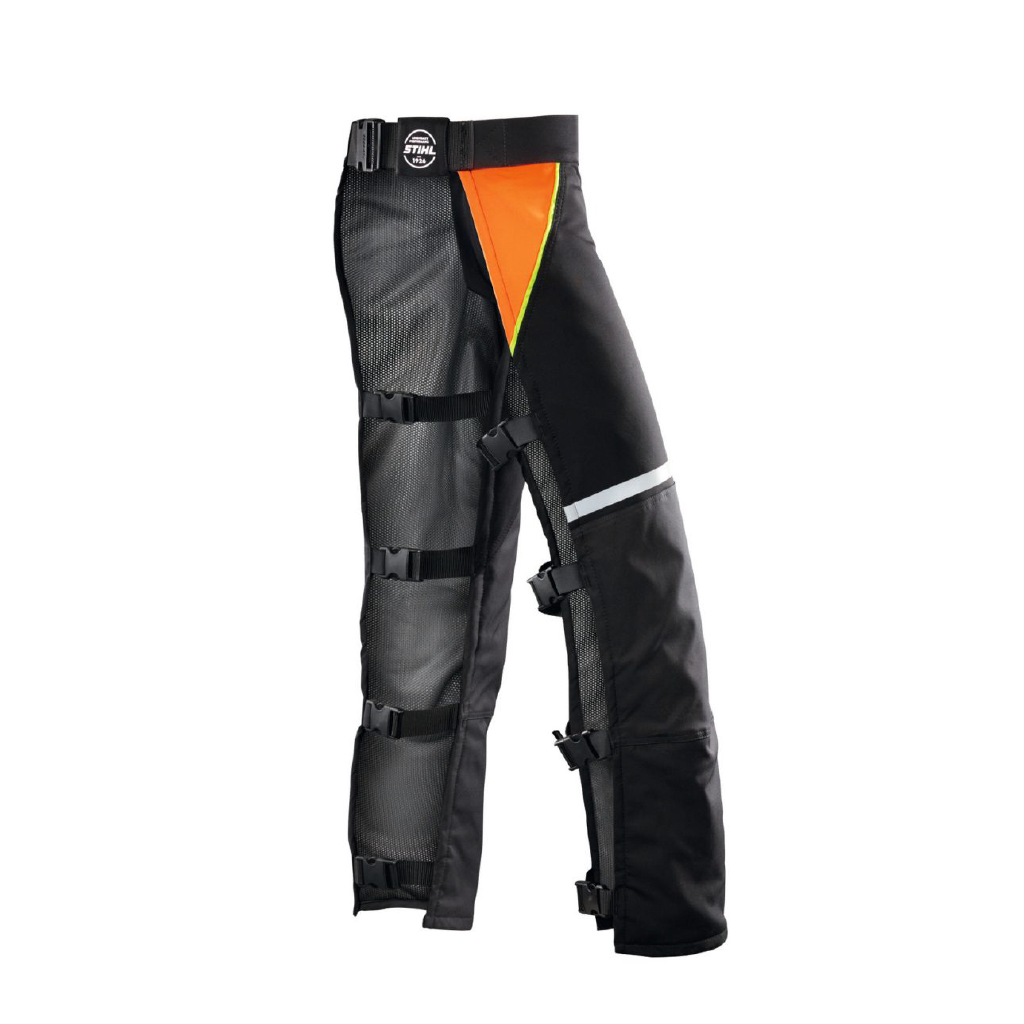 Perneras anticorte STIHL FUNCTION Core 270° ofrece buena protección para todas las aplicaciones de motosierras y utiliza correas para que se pueda poner cómodamente sobre los pantalones de trabajo y quitarse sin necesidad de quitarse los zapatos.