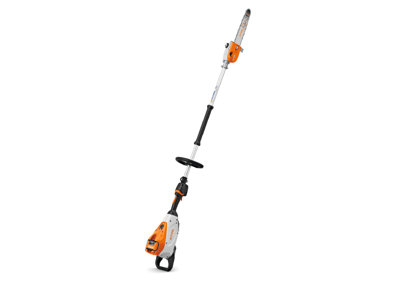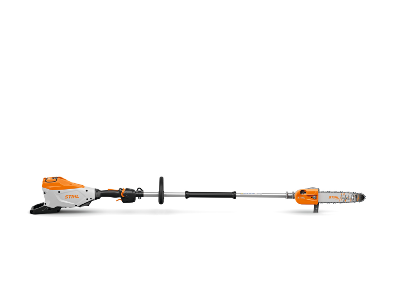 Silenciosa y con bajo nivel de vibraciones. Cadena PM3 de 3/8″ P, tubo corto y rígido para un corte preciso, empuñadura de manejo ergonómica con pantalla LED, caja reductora ligera y robusta de magnesio, gancho para ramas para una manipulación sencilla del material cortado.