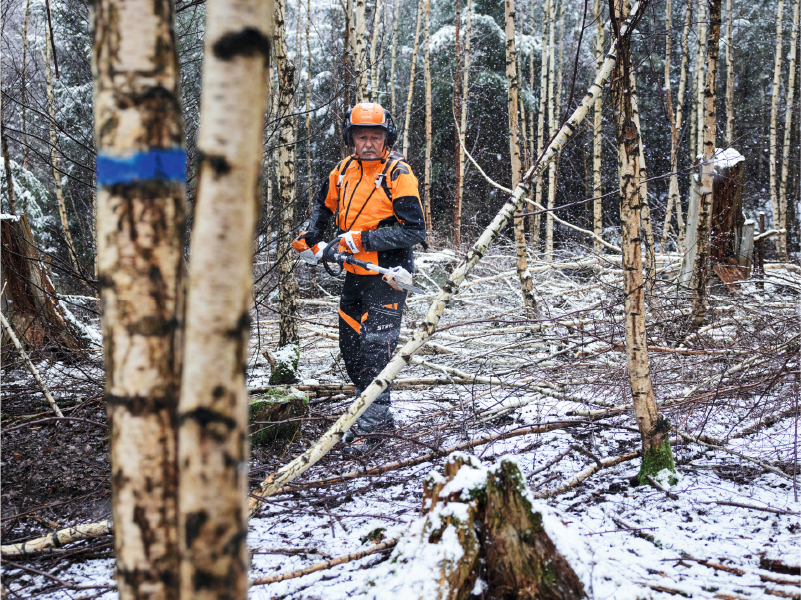 Podadora de altura HTA 150 de batería STIHL especialmente potente para trabajos de mantenimiento profesionales y, sobre todo, como máquina de mantenimiento forestal para arboledas jóvenes.